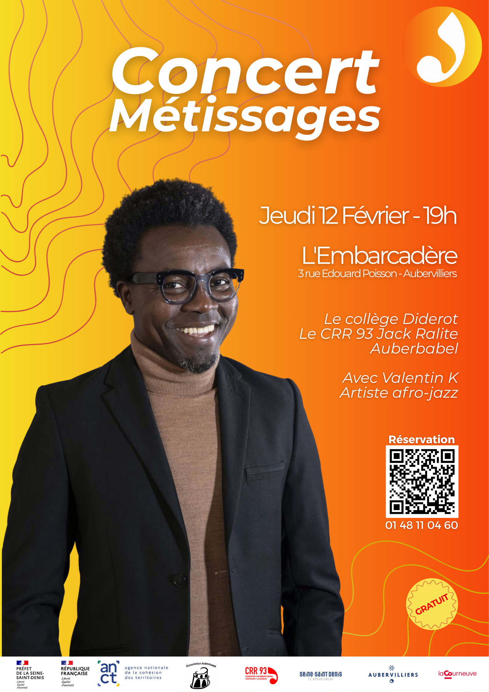 Le jeudi 12 février sera marqué par deux rendez-vous musicaux : à 19h le Concert Métissages proposé par Valentin K, fruit d’une coopération entre le collège Diderot, le CRR 93 Jack Ralite et Auberbabel, et à 19h30 un concert de la classe d’écriture d’Adelon Nisi, Fabre Guin, démonstration de créativité instrumentale et composition.