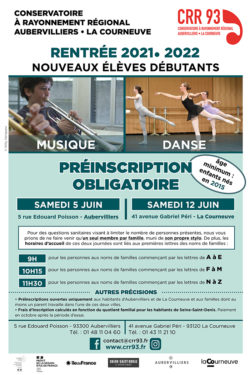 Par ailleurs, impatients de ré-ouvrir nos portes au plus grand nombre, nous préparons résolument la rentrée prochaine et le recrutement de nouveaux élèves, débutants et confirmés, tout en continuant à déployer nos actions éducatives, artistiques et culturelles au sein des établissements scolaires d'Aubervilliers et de La Courneuve.