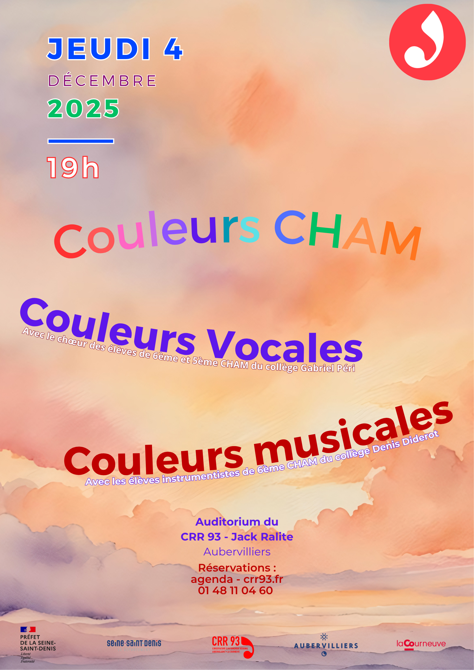 Couleurs Vocales : Avec le chœur des élèves de 6ème et 5ème CHAM du collège Gabriel Péri Couleurs musicales : [...]